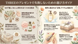 THREEのプレゼントが嬉しくない理由を徹底分析!独特な香りや肌質のリスクを解説し、相手に心から喜ばれる選び方を伝授します。予算別の鉄板アイテムや名入れのコツも満載。threeのプレゼントが嬉しくないという不安を解消し、センスの良さが伝わる特別な贈り物を自信を持って選びましょう。