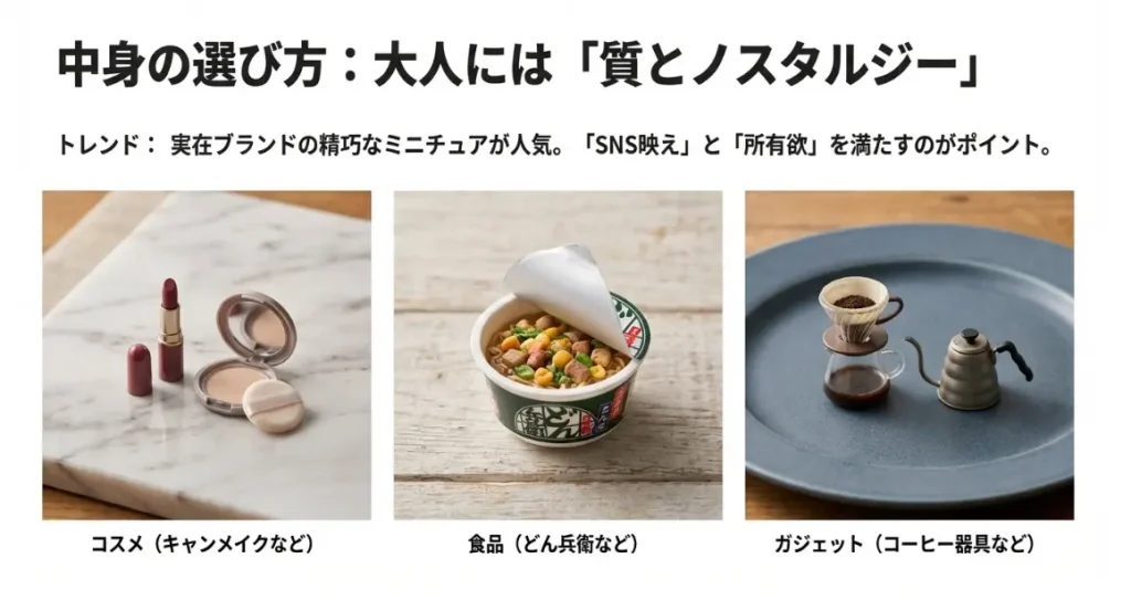 大人向けの中身はブランドミニチュアがトレンド