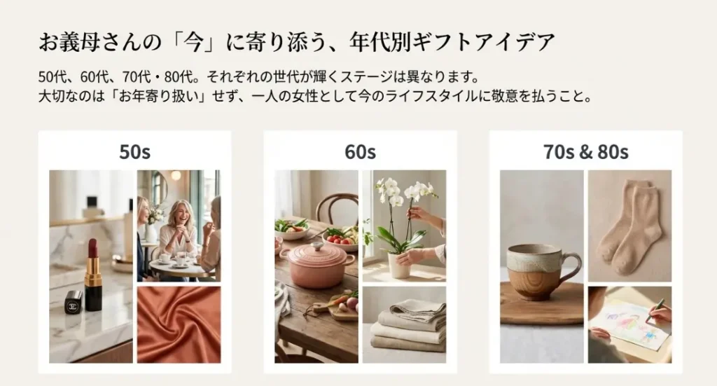 - 義母の年代やライフスタイルに合わせた失敗しないプレゼント選びの基準